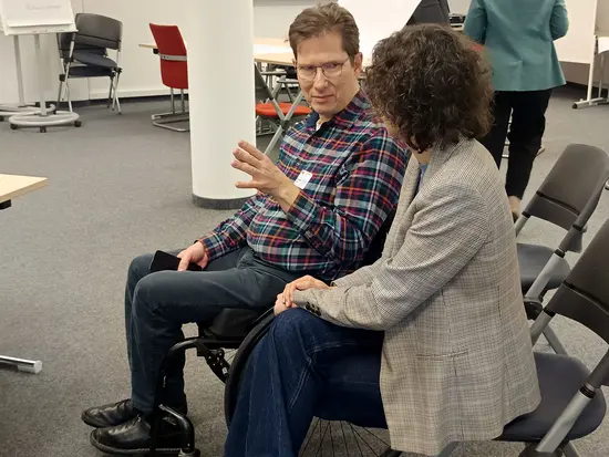 Michael Roos, als Projektleiter bei Hephata für „STUFE“ zuständig, zieht knapp zwei Jahre nach Projektstart eine positive Bilanz: „Wir allen haben immer noch Lust auf das Projekt, nicht zuletzt, weil es unsere Arbeit ja verbessert.“ Alle Projekt-Beteiligten hätten jederzeit die Möglichkeit auszusteigen. „Aber“, so berichtet Roos, „niemand wollte das.“ Roos und das Projektteam haben den LAG-Fachtag in Essen auch zum Netzwerken genutzt, um von den Kolleg*innen zu erfahren, ob sie die bisherigen Erkenntnisse von „STUFE“ teilen und welche weiteren Ideen sie möglicherweise liefern können. „Eine Kollegin hat beispielsweise ihre guten Erfahrungen mit einem Klient*innenbeirat geschildert, aber auch davon erzählt, wie lange es bis dahin gedauert hat. Von solchen Berichten können wir alle profitieren“, so Roos.