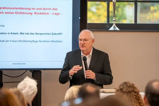 Die Veranstaltung spannte den Bogen von einem Rückblick auf 20 Jahre SGB II und seine Versprechen bis hin zu einem Ausblick auf die zukünftigen Entwicklungen und Perspektiven der Arbeitsmarktintegration. Ziel der Freien Wohlfahrtspflege ist es, durch verlässliche Strukturen, wirksame Maßnahmen und eine enge Zusammenarbeit mit ihren Partnern vor Ort Teilhabe an und Integration in Arbeit nachhaltig zu stärken.