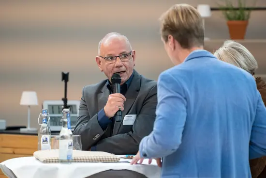 Prof. Stefan Sell (Hochschule Koblenz) bereicherte die Fachtagung um wissenschaftliche Perspektiven. Seine wichtigsten präsentierten Erkenntnisse: Viele der aktuellen Diskussionen rund um das Bürgergeld wurden in den letzten 20 Jahren bereits geführt und sind letztlich vor allem populistisch und wenig zielführend. An die Bundespolitik richtete er einen klaren Appell zur sogenannten Haushaltswahrheit: Es sei notwendig, die Verwaltungshaushalte der Jobcenter realistisch auszustatten, damit die Mittel aus dem Eingliederungstitel vollständig für ihren eigentlichen Zweck genutzt werden können – die Eingliederung von Menschen in Arbeit und die Stärkung von Teilhabe durch Arbeit.