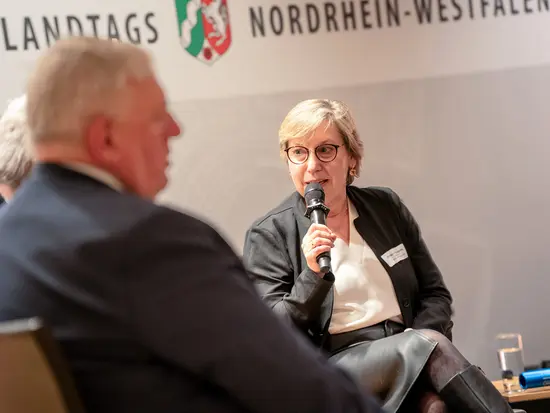 Im anschließenden von WDR-Moderator Uwe Schulz geführten Podiumsgespräch mit Kirsten Schwenke und deren Vorgänger im Amt als Vorsitzender der Arbeitsgemeinschaft der Freien Wohlfahrtspflege NRW, Hartmut Krabs-Höher (Vorstandsvorsitzender DRK-Landesverband Nordrhein), benannten Karl-Josef Laumann, Minister für Arbeit, Gesundheit und Soziales des Landes Nordrhein-Westfalen, und Lorenz Bahr, Staatssekretär im Ministerium für Kinder, Jugend, Familie, Gleichstellung, Flucht und Integration, sowohl gemeinsame Ziele von Politik und Wohlfahrt als auch Herausforderungen beim Sichern einer verlässlichen sozialen Infrastruktur.
